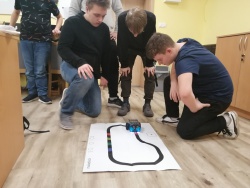 Podczas zajęć uczniowie składali roboty sfinansowane w ramach projektu "Kompetentny zawodowiec". Uczestnicy chętnie zaangażowali się w montaż i programowanie mBotów.
