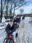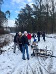 Przygodę rozpoczęliśmy od tradycyjnego kuligu – pędzące sanie i piękna zimowa aura wprawiły wszystkich w doskonałe humory.