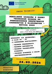 Projekt: ,,Mobilność uczniów i kadry technikum szansą na podniesienie kompetencji zawodowych i kluczowych – EDYCJA 2025” czas start!