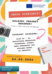 Do wzięcia udziału w naborze zapraszamy uczniów i uczennice kształcących się w klasach II-IV wszystkich oddziałów technikum, którzy w przeszłości nie brali udziału w zagranicznych mobilnościach edukacyjnych w ramach sektora Edukacja Szkolna w ramach programu ERASMUS+ czy FERS.